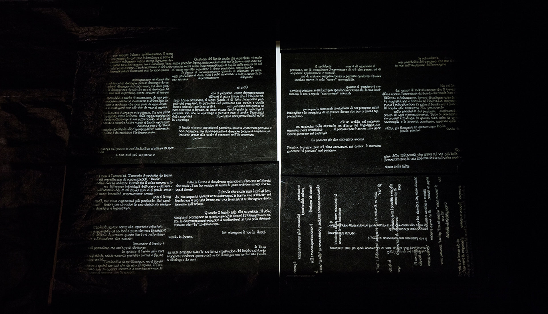 Il tono dominante è il nero, colore che riconduce al sentimento della paura e dell’inquietudine che la natura può generare nell’inconscio dell’uomo.